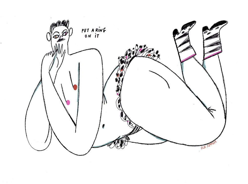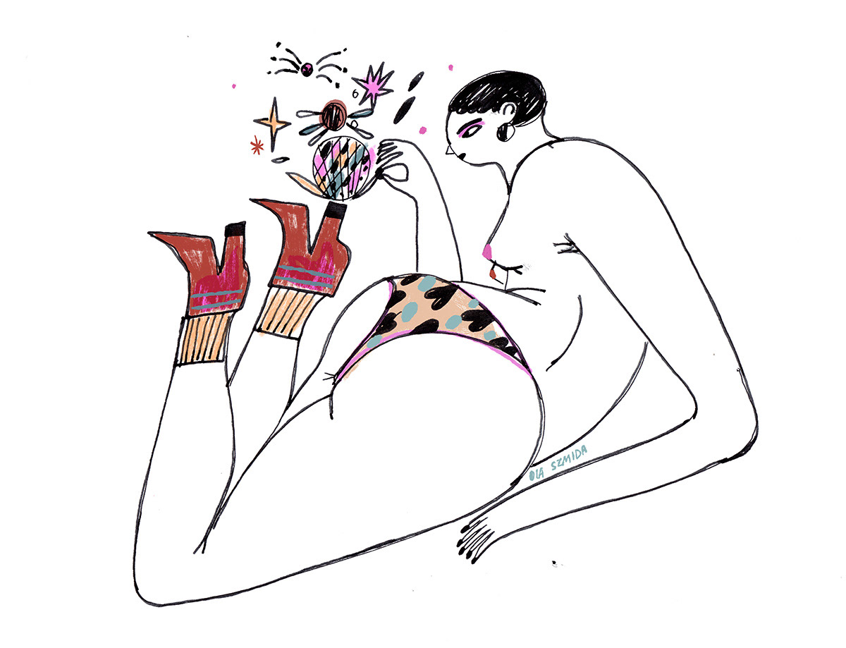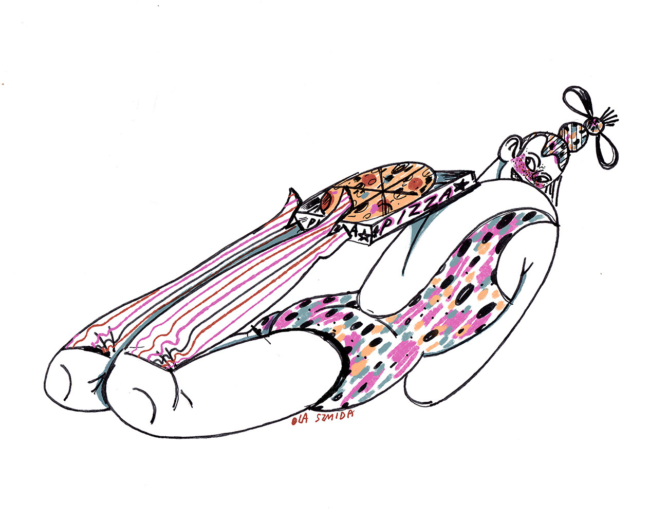 I love drawing in ink! And one of my fav topics are women in swim suits, gym suits or underwear, especially if they eat cakes or pizzas. Personal project.