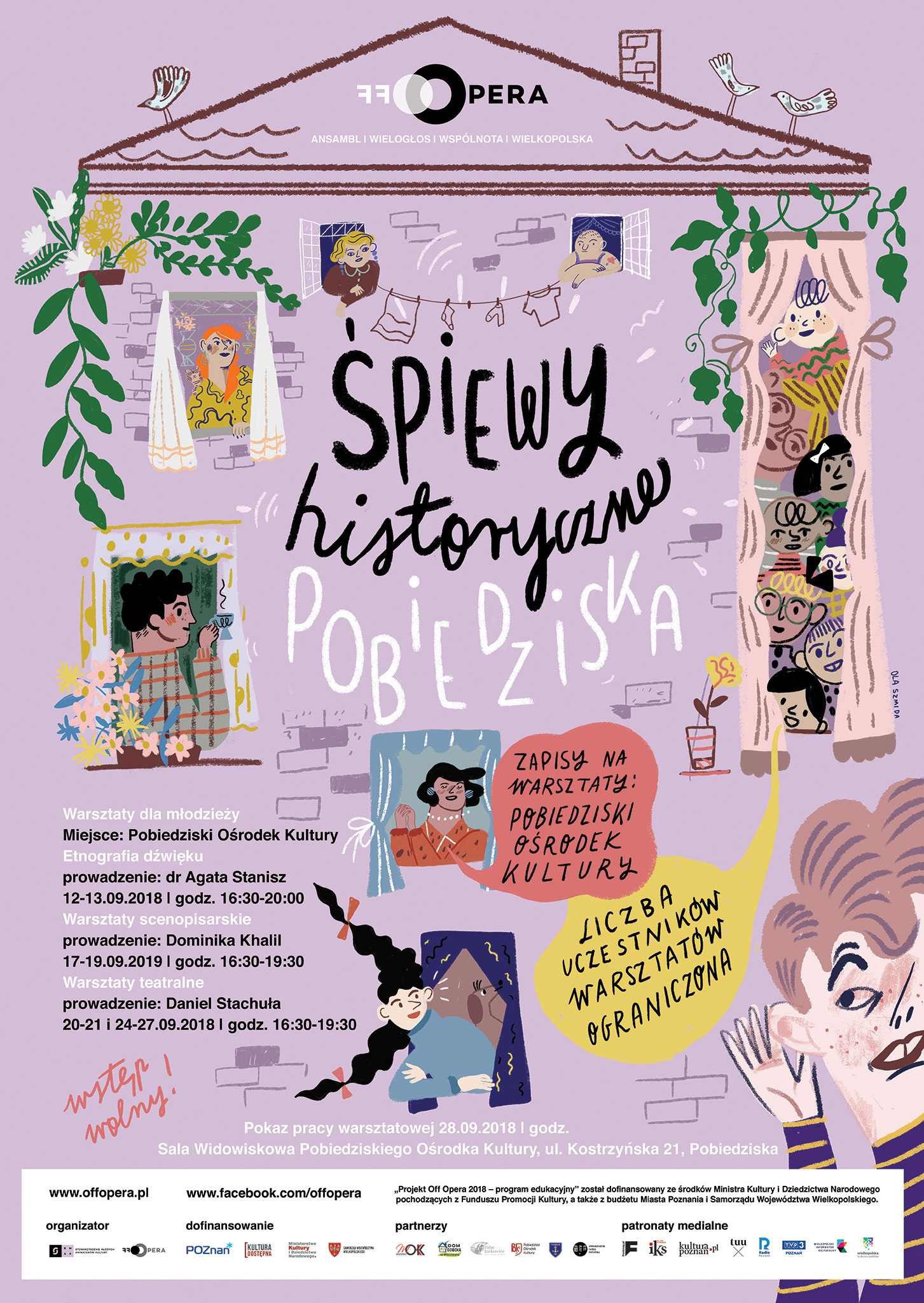 Set of posters for the Festival Off Opera The Festival's goal is to popularize opera and classical music by local events and workshops for adults and children. Every year another color is the main theme for the festival - this year violet was the chosen color.